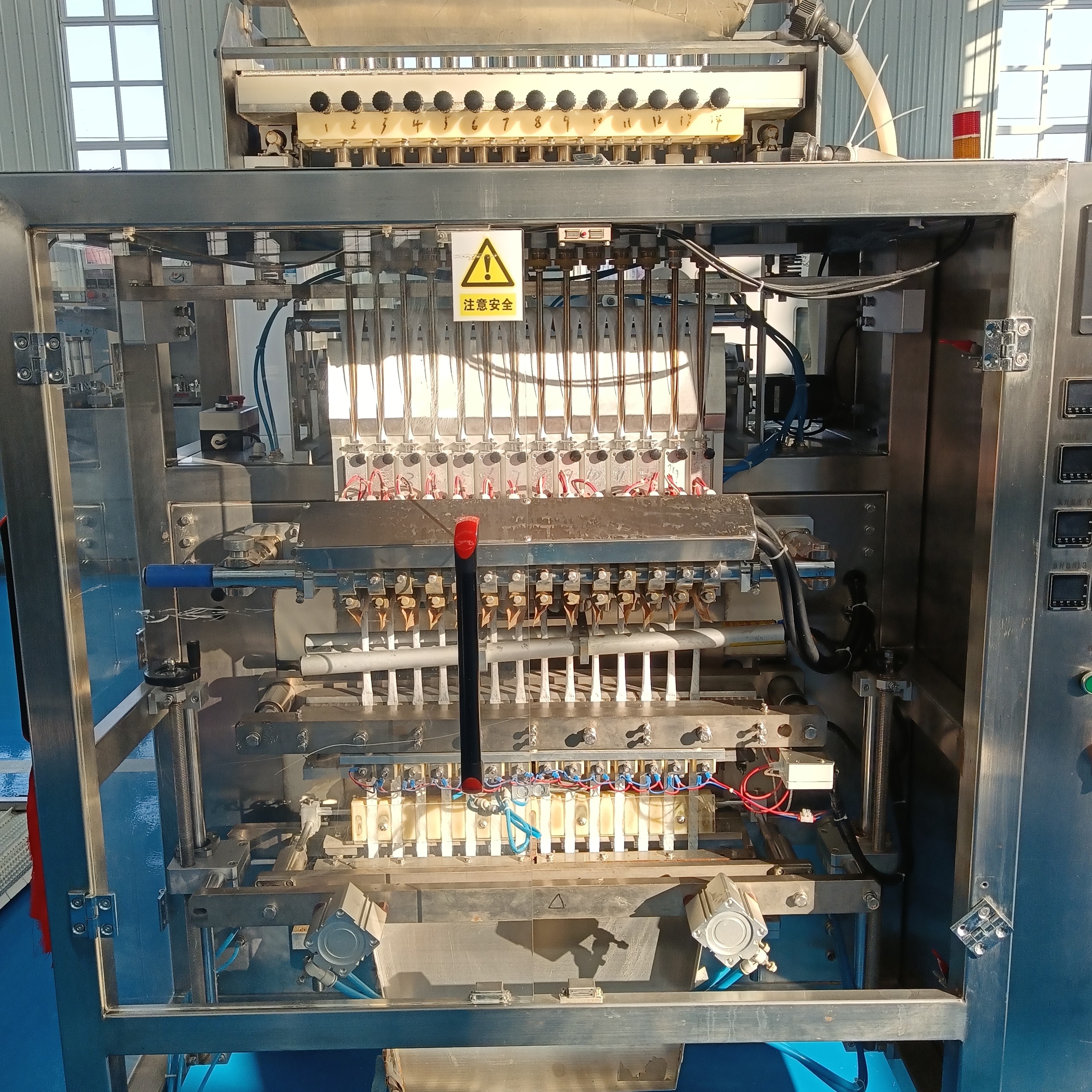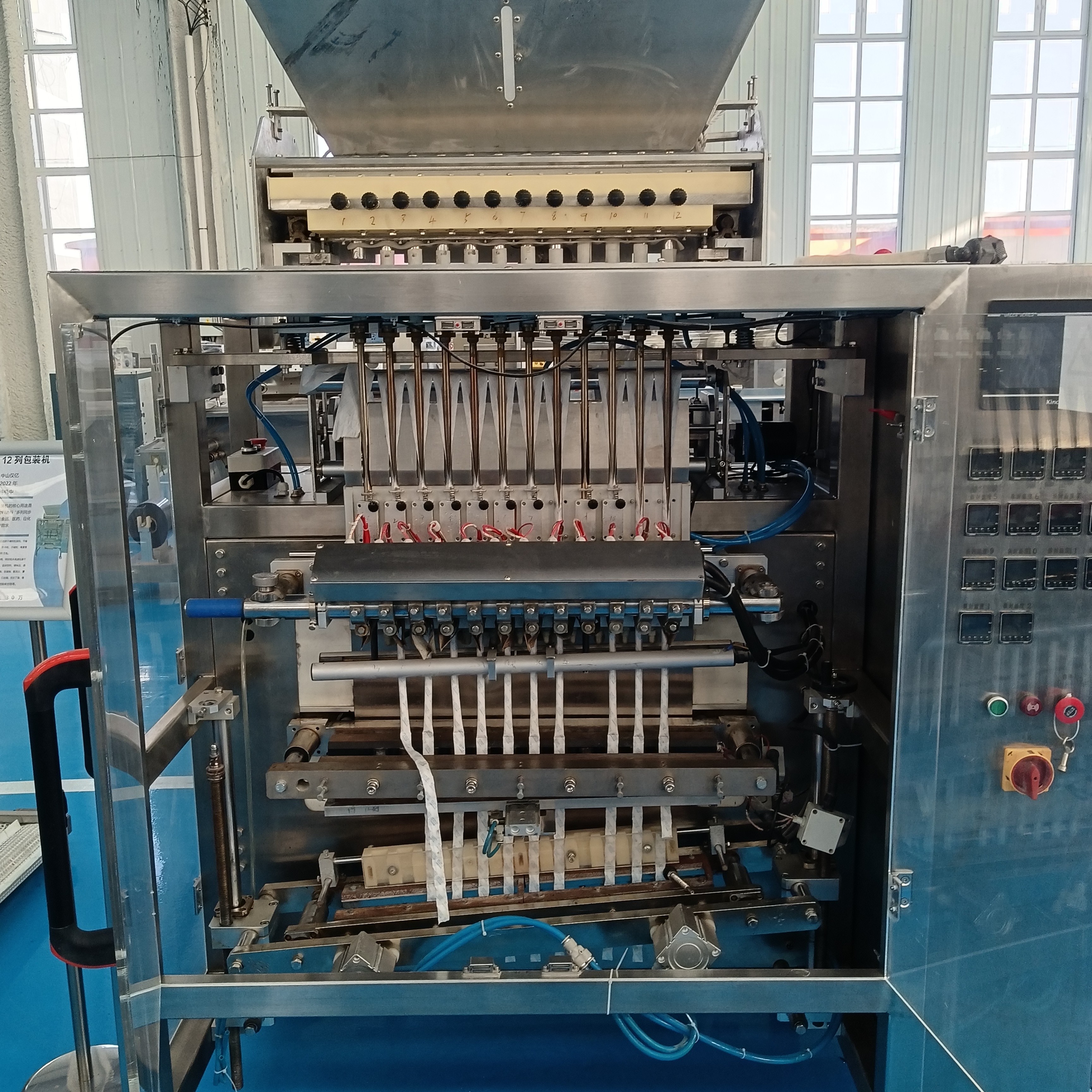 整個(gè)工作過(guò)程由PLC控制系統(tǒng)和伺服電機(jī)統(tǒng)一協(xié)調(diào),操作人員只需通過(guò)觸摸屏設(shè)置袋長(zhǎng)、列數(shù)、包裝速度、計(jì)量參數(shù)、封合溫度等,設(shè)備就能實(shí)現(xiàn)全程自動(dòng)化運(yùn)轉(zhuǎn),而且每一列都可獨(dú)立調(diào)整參數(shù),適配不同規(guī)格的包裝需求,既保證了包裝效率,也兼顧了包裝質(zhì)量,這也是它能廣泛應(yīng)用于食品、化工、五金等行業(yè)的核心原因。